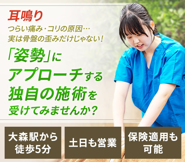 大森かなで接骨院では、耳鳴りの改善にあたり、原因の追究と症状の再発防止と改善に努めています。